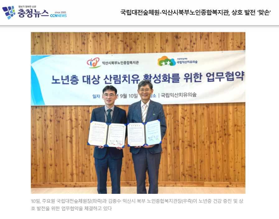 ´ÙÀ½±Û [ÃæÃ»ÀϺ¸] ±¹¸³´ëÀü½£Ã¼¿ø-ÀÍ»ê½ÃºÏºÎ³ëÀÎÁ¾ÇÕº¹Áö°ü, ¡®³ë³âÃþ °Ç°­ ÁõÁø ¾÷¹«Çù¾à¡¯ ü°á